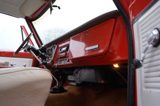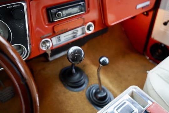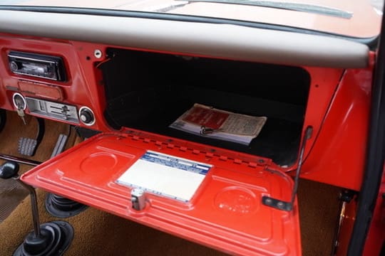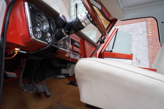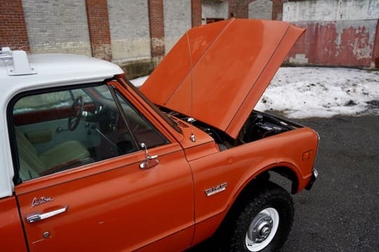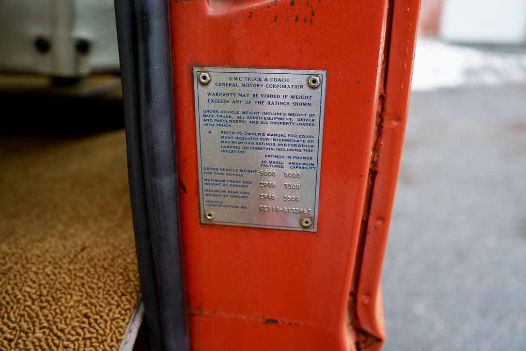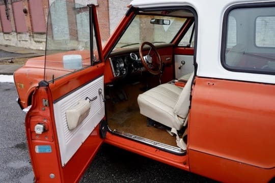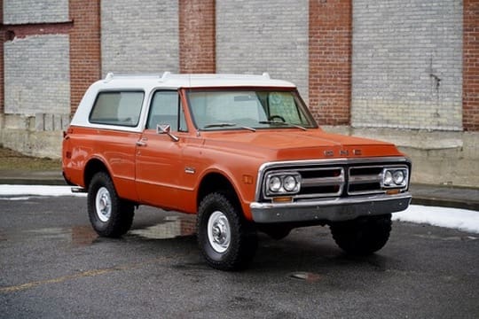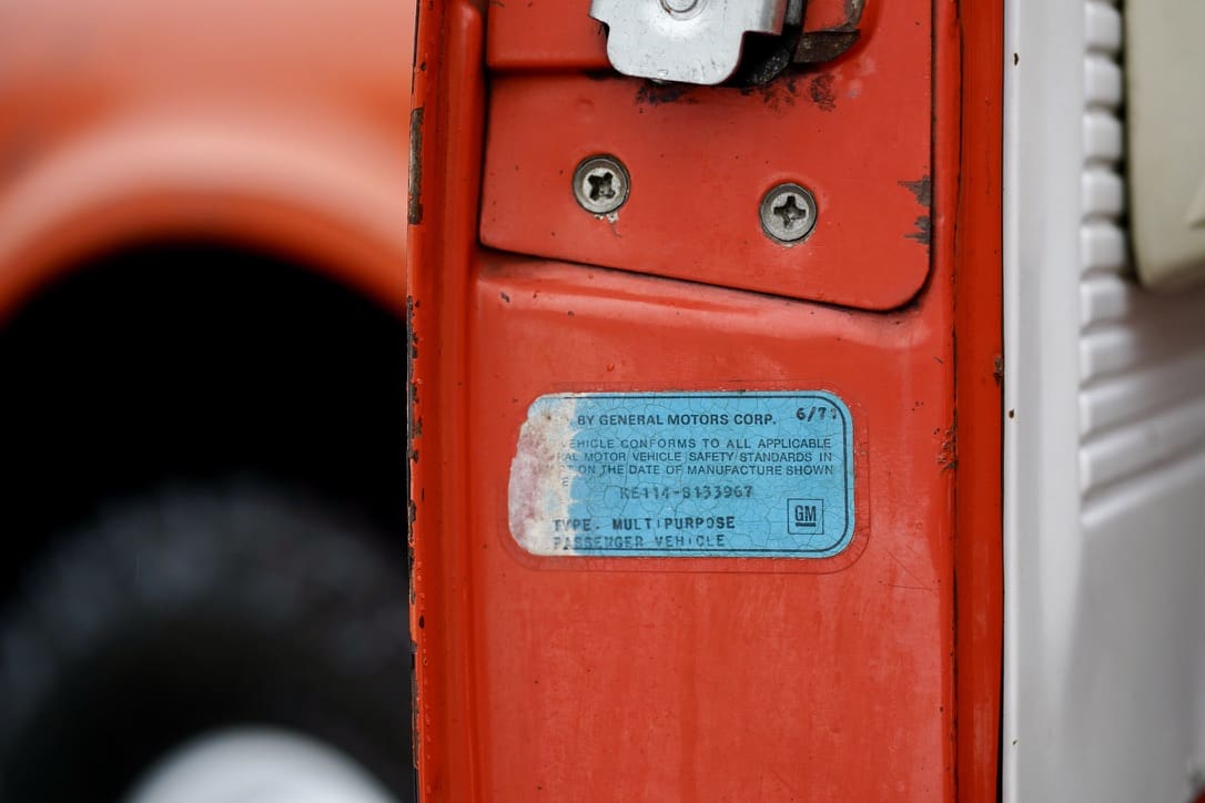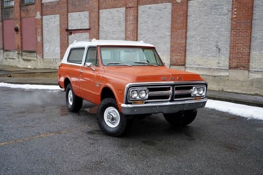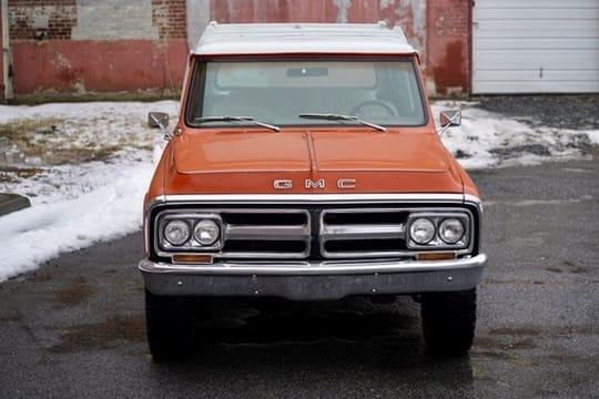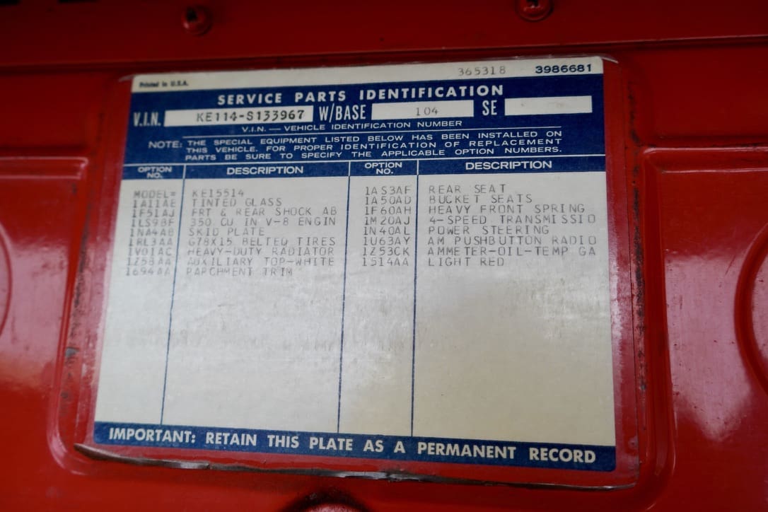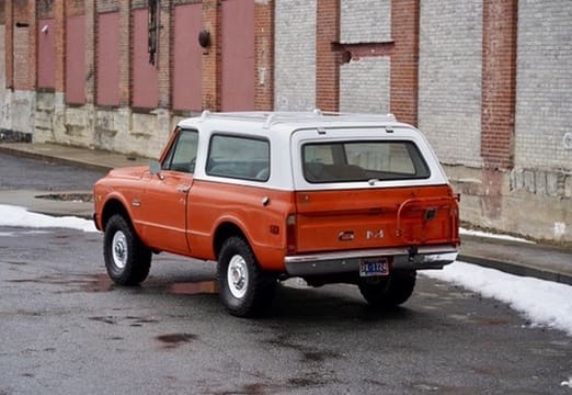 Solid west-coast 1971 GMC Jimmy 4×4 powered by the original 8-cyl. 350cid 4bbl V8 motor mated to the 4-speed manual transmission. 73,000 original miles. Just arrived from Oregon. Original sheet metal. “Light Red” over the original “White” bucket seat interior. Factory power steering and power disc brakes. Original interior in excellent condition. Seats have no tears.  Removable hardtop is perfect, like new condition. Rare “Hickey Enterprises” roof rack. All electrical works as it should including gauges, lights, wipers, etc. Floors, frame, undercarriage and tailgate are solid with no rot. Runs and drives excellent, turnkey ready to go. Factory 15-inch steel wheels wrapped in brand new Firestone Destination M/T2 tires. Original spare keys included. Can help arrange transport or drive it home!