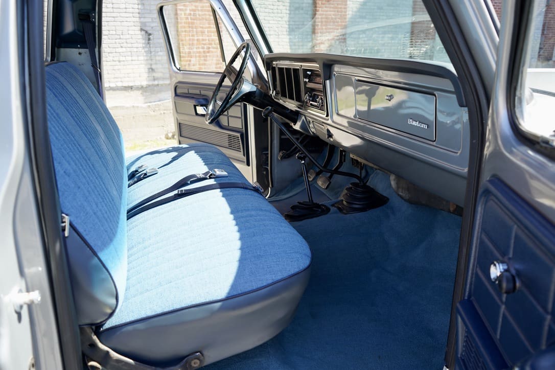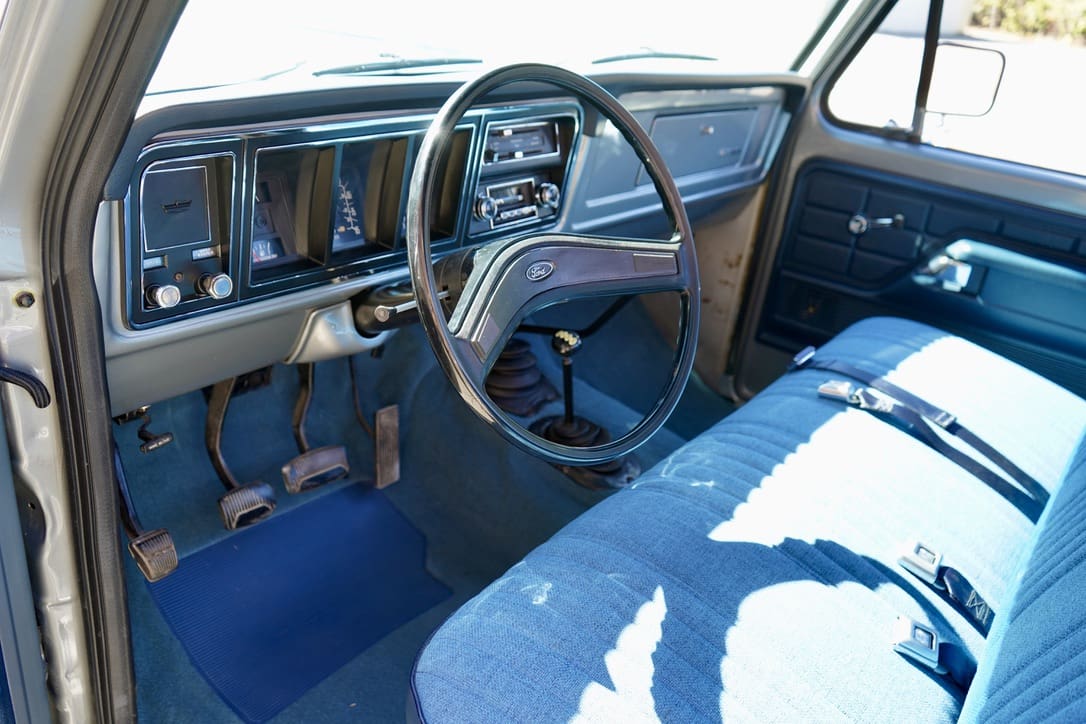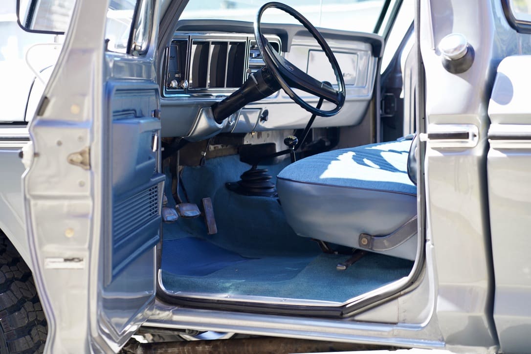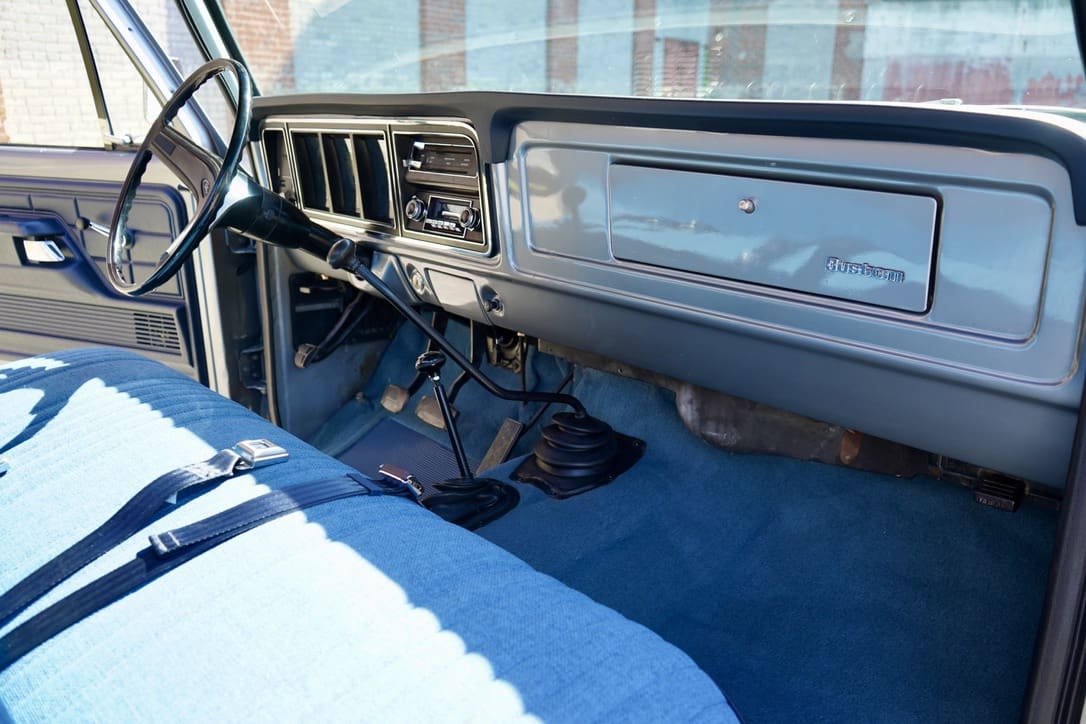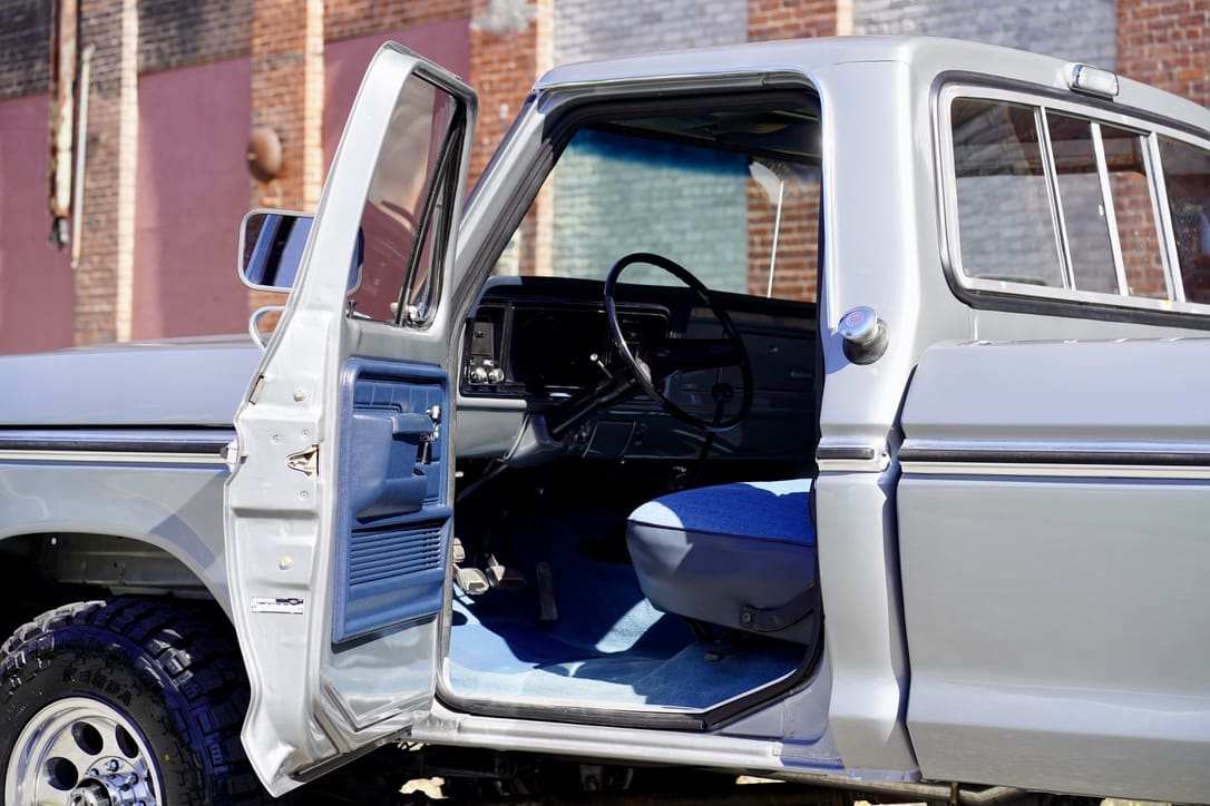 1977 Ford F-250 “Highboy” 4×4. Factory 351cid V8 motor that runs excellent mated to the original 4-speed manual transmission. Dressed in the original colors, “Silver Metallic” paint over the original “Blue Knit Vinyl” Custom bench seat interior in near perfect condition. Marti-report included. Divorced transfer case.