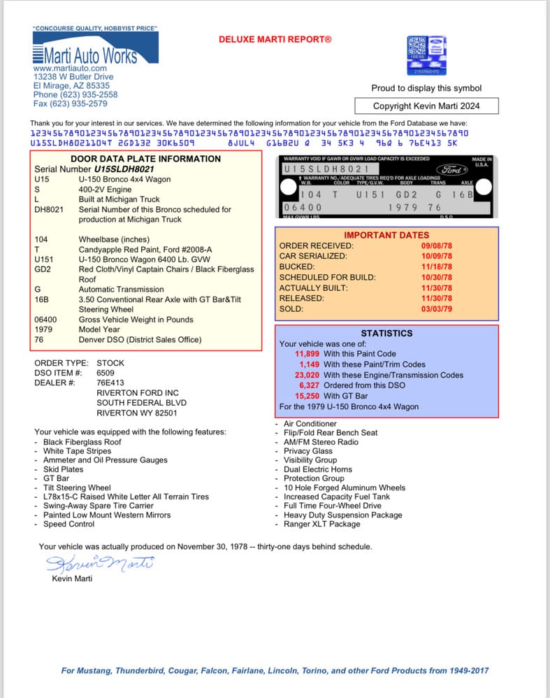 Original condition, documented 1979 Ford Bronco XLT 4×4 powered by the factory 400cid V8, automatic transmission. Rust free, Mid-West truck from Idaho!