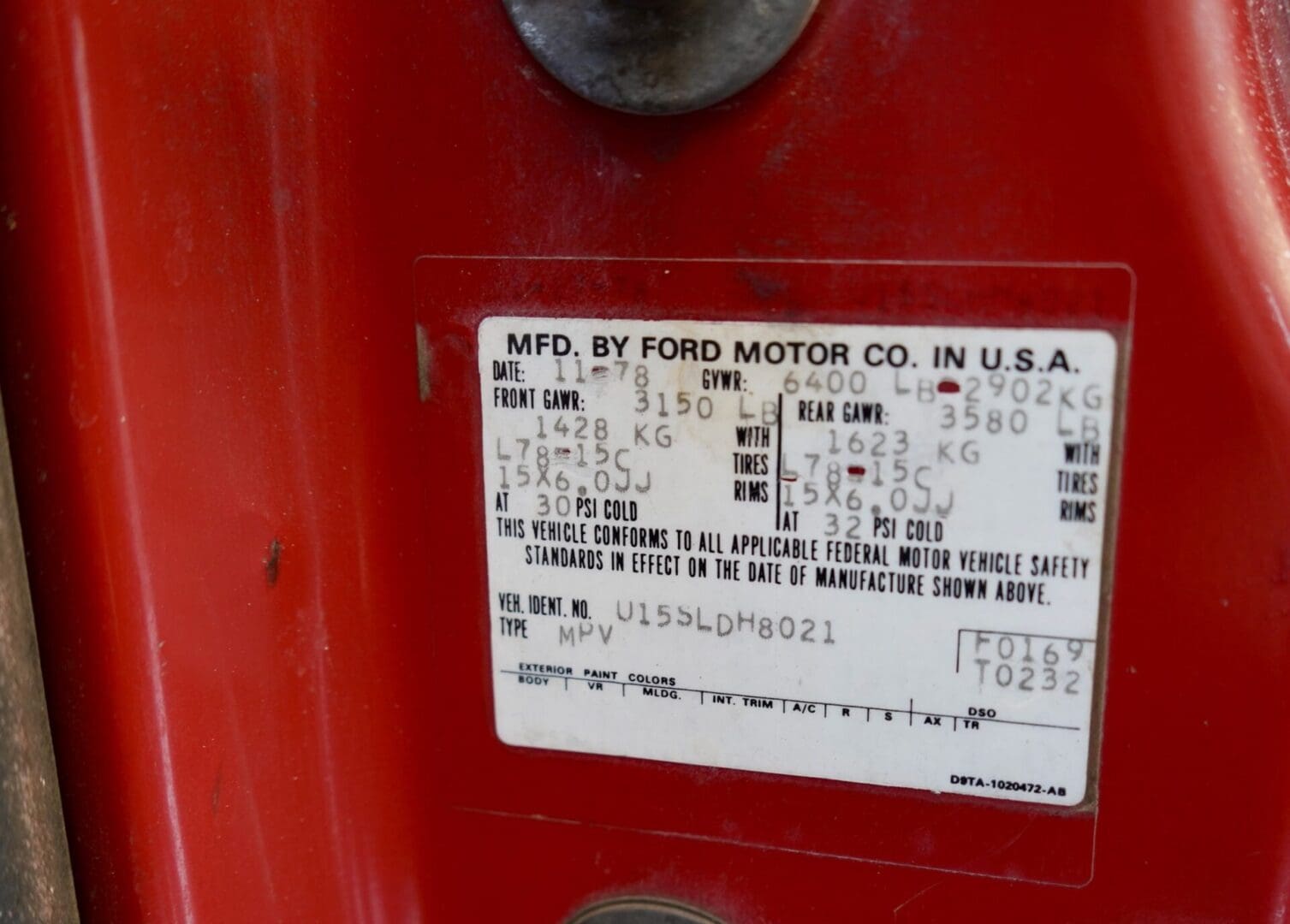 Original condition, documented 1979 Ford Bronco XLT 4×4 powered by the factory 400cid V8 engine mated to the original automatic transmission. Mid-West truck from Idaho! Clean Idaho Title. Only produced from 1978-1979, this uncut 79 Bronco XLT is 100% rust free. Original sheet metal truck! Perfect floors, doors, frame, etc. Original paint, dressed in Candy Apple Red over Red Cloth/Vinyl Captain Chair interior in excellent condition. Front seats are being professionally reupholstered and will be photographed when complete.